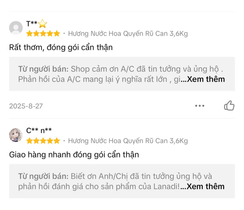 Lanadi là thương hiệu chuyên sản xuất và phân phối nước xả, nước giặt và nước hoa, mang đến giải pháp toàn diện cho việc chăm sóc quần áo và không gian sống. Đặt sự hài lòng của khách hàng lên hàng đầu, Lanadi tự hào với các sản phẩm chất lượng cao, mùi hương độc đáo và thiết kế thân thiện, góp phần nâng tầm trải nghiệm sống của mọi gia đình.
