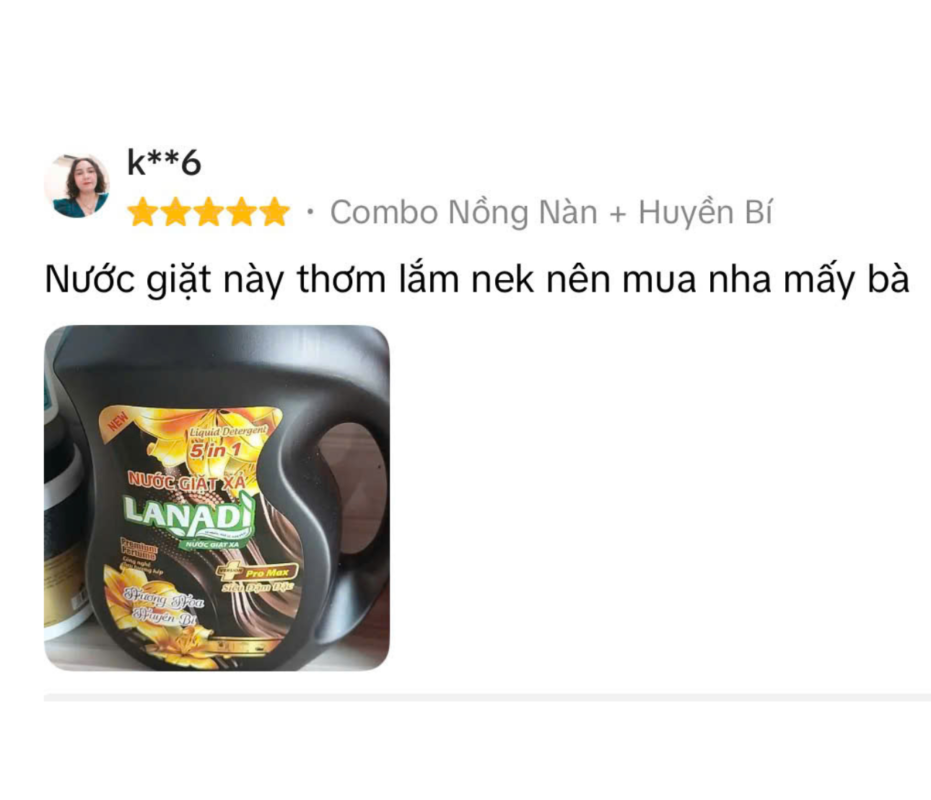 Nổi bật với công thức tiên tiến, giúp nước giặt và nước xả vải làm sạch sâu, giữ quần áo mềm mại, thơm lâu. Nước hoa của thương hiệu gây ấn tượng bởi hương thơm sang trọng, độc đáo, phù hợp nhiều sở thích. Sản phẩm an toàn, dịu nhẹ, thân thiện môi trường, cùng bao bì tiện lợi, giá cả hợp lý, khẳng định Lanadi là lựa chọn hàng đầu cho cuộc sống chất lượng.