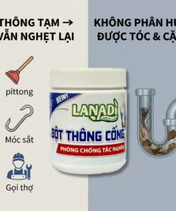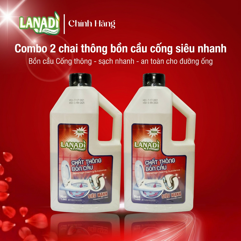 ✨ Nước thông bồn cầu LANADI 1.4kg – Giải pháp siêu mạnh mẽ, đánh tan mọi tắc nghẽn và khử mùi hiệu quả. Sản phẩm được đóng theo nguyên tắc an toàn, không rót đầy tận miệng để tránh áp lực gây tràn khi vận chuyển. Chai luôn lớn hơn thể tích bên trong, luôn đủ 1.4kg chuẩn.