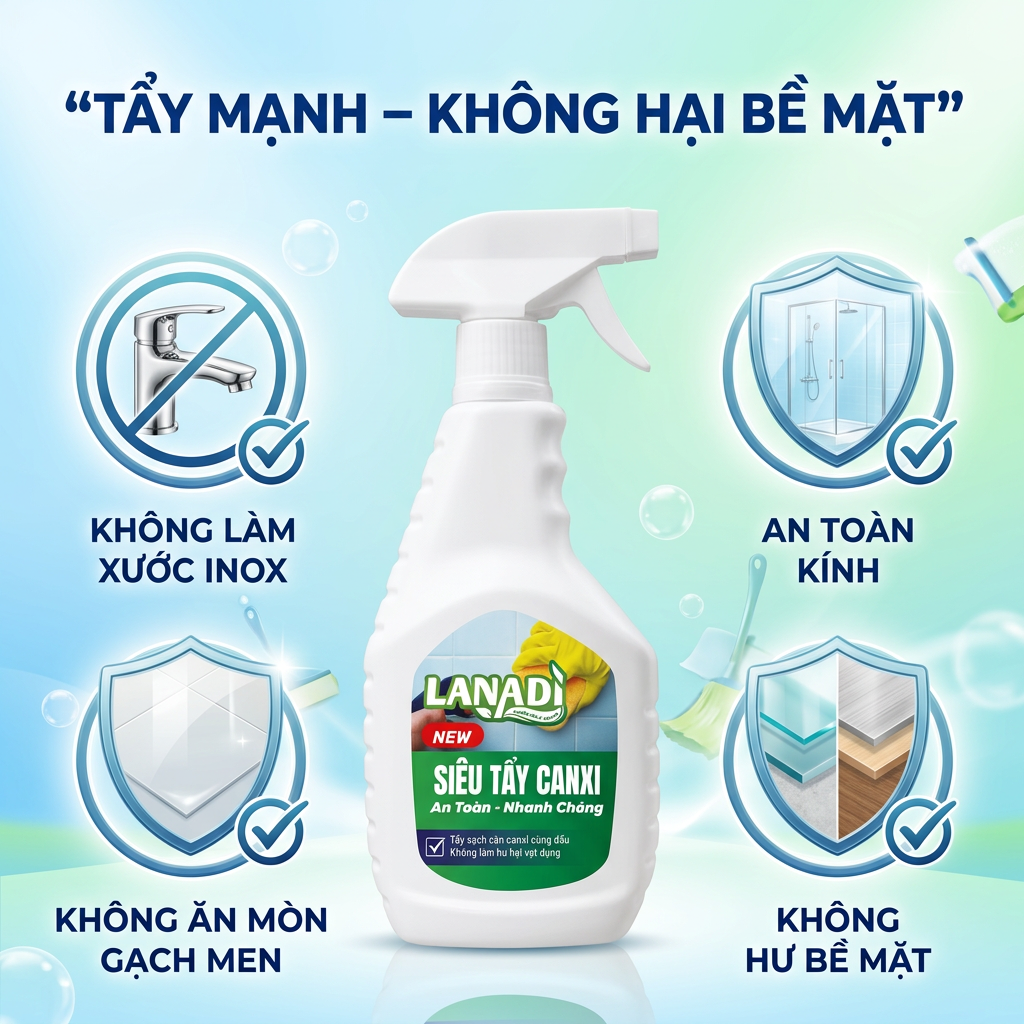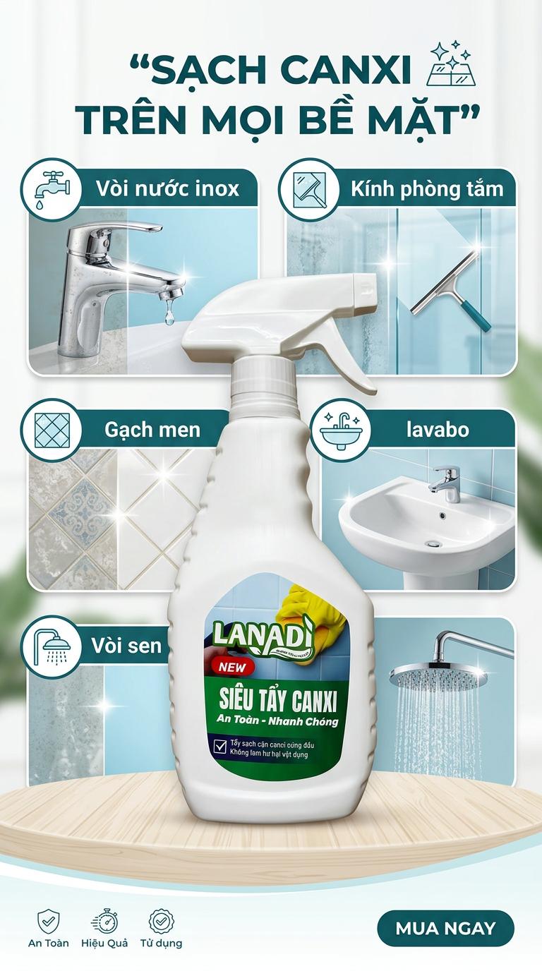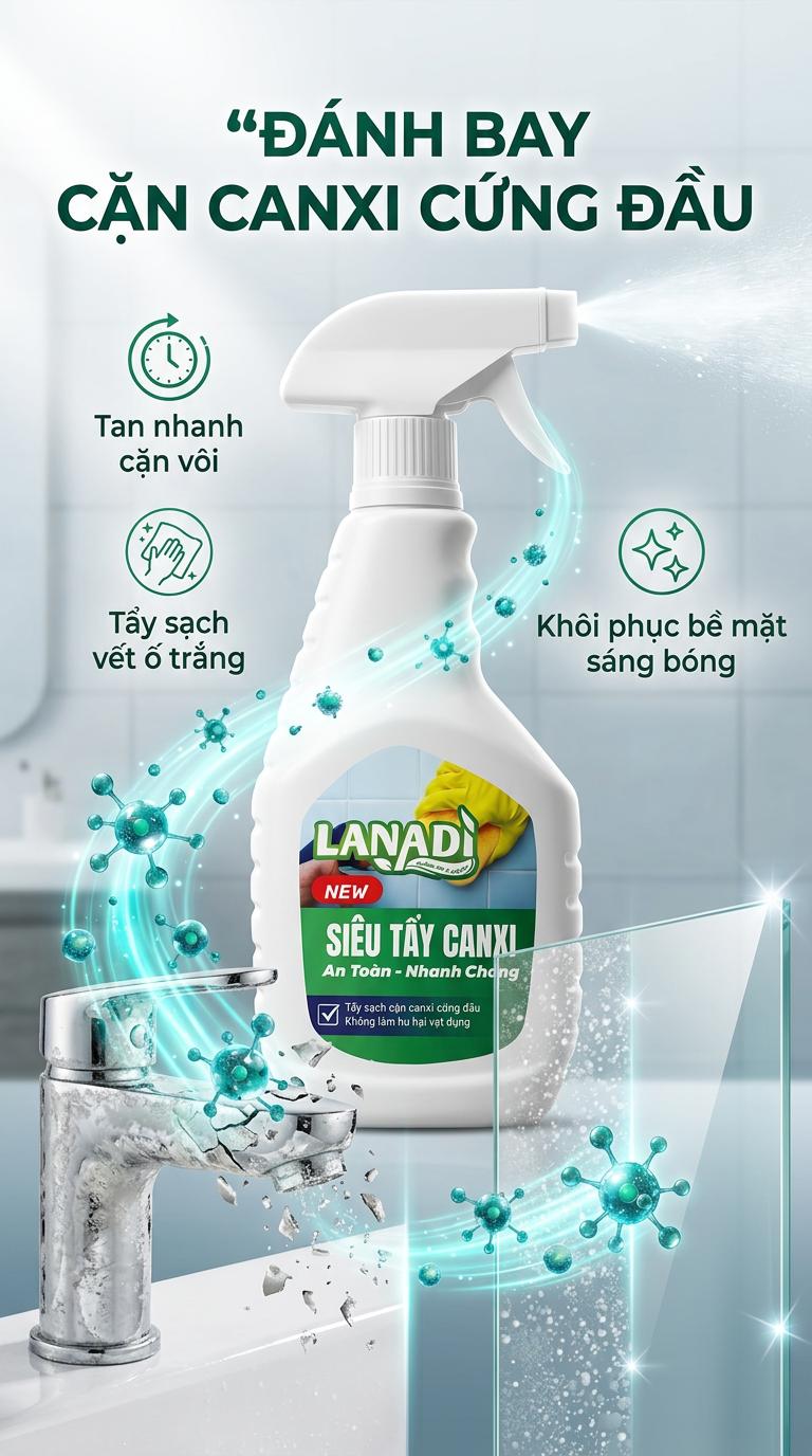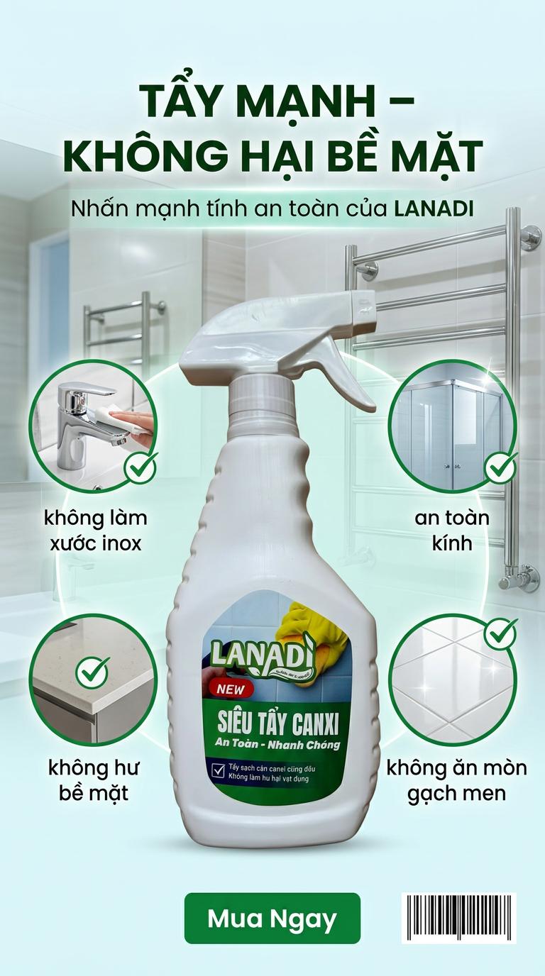 🧽 SIÊU TẨY CANXI LANADI – ĐÁNH BAY CẶN TRẮNG CỨNG ĐẦU!