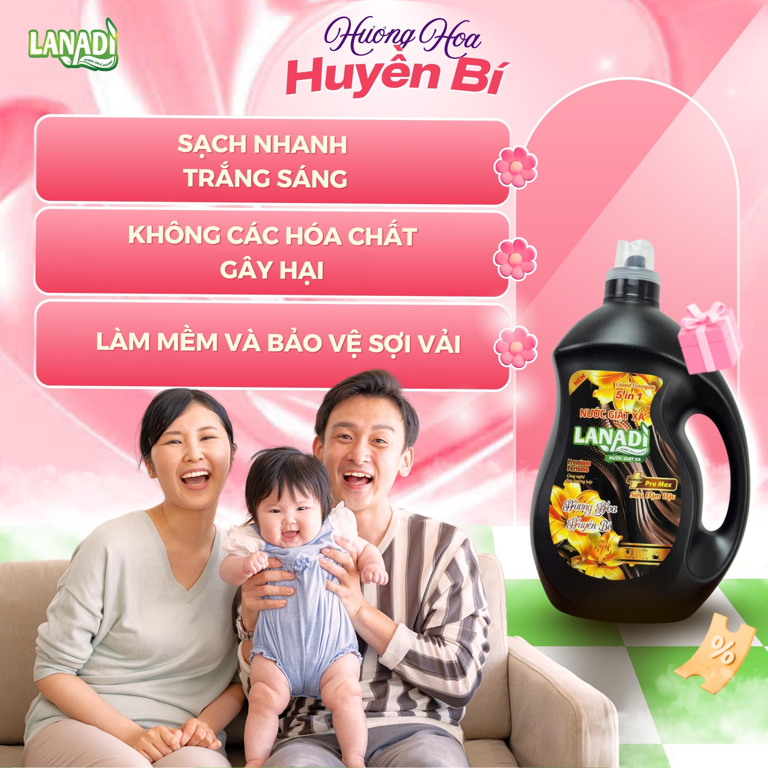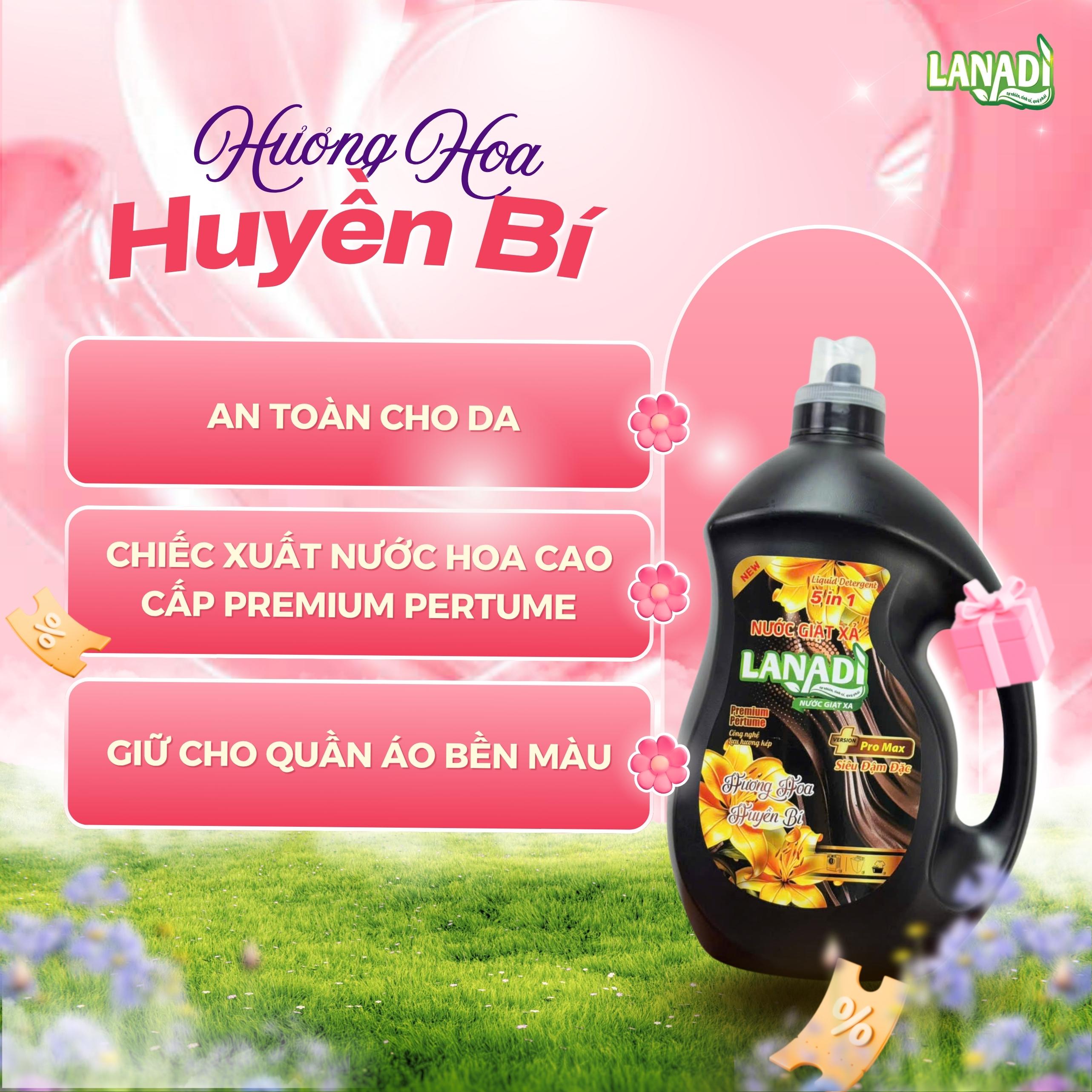 Nước Giặt Xả Lanadi Hương Nước Hoa Huyền Bí Premium Pertume Phiên Bản Pro Max 5in1 Lưu Hương 72h – 3,6kg