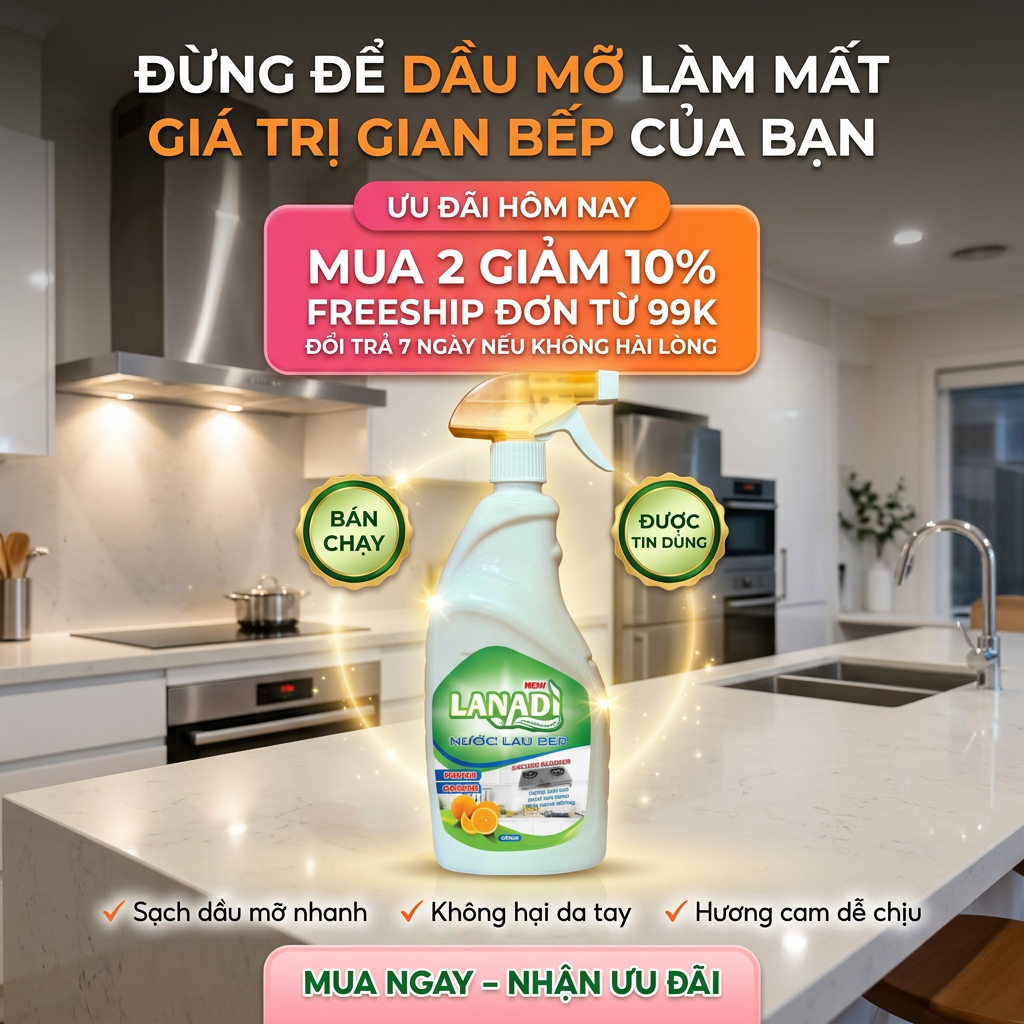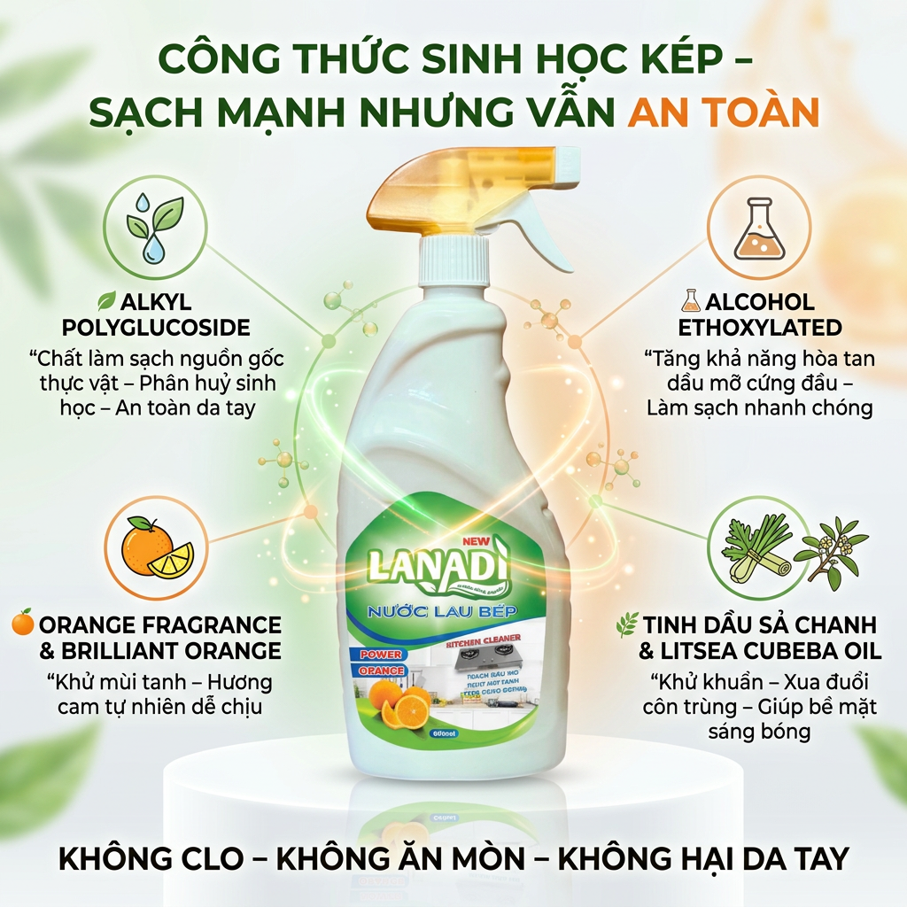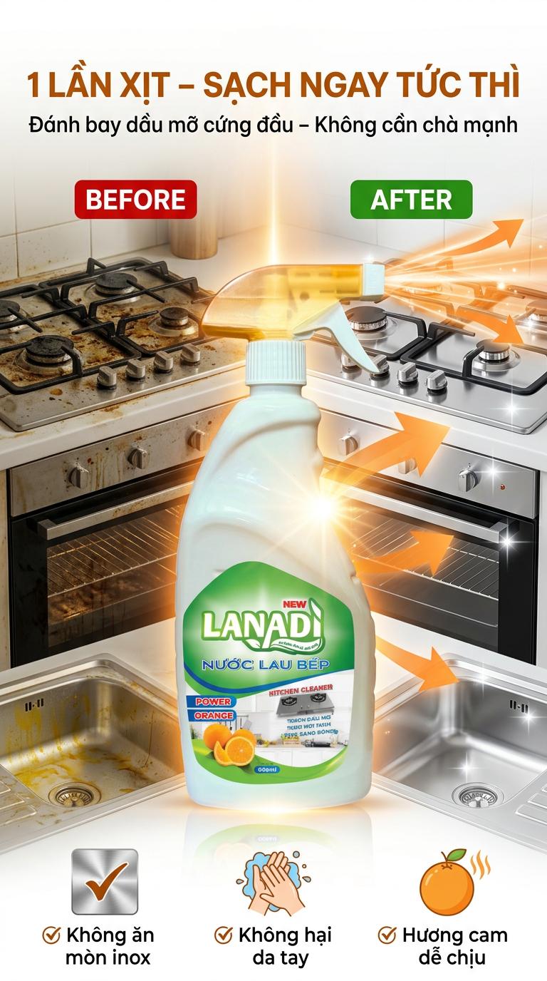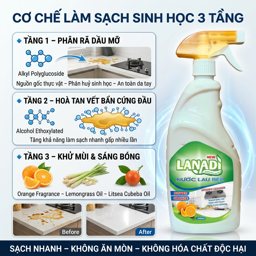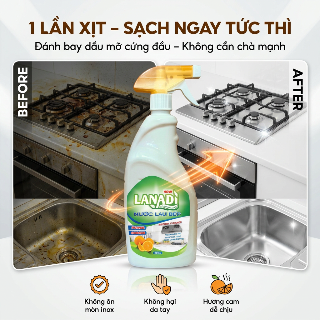 - Hiệu quả ngay lần đầu sử dụng – bếp sạch dầu, sáng bóng, thơm mát