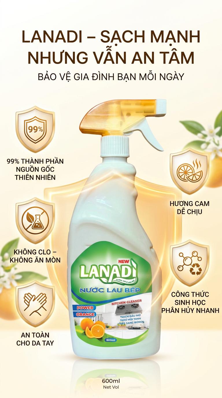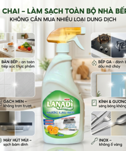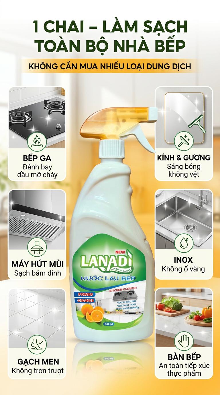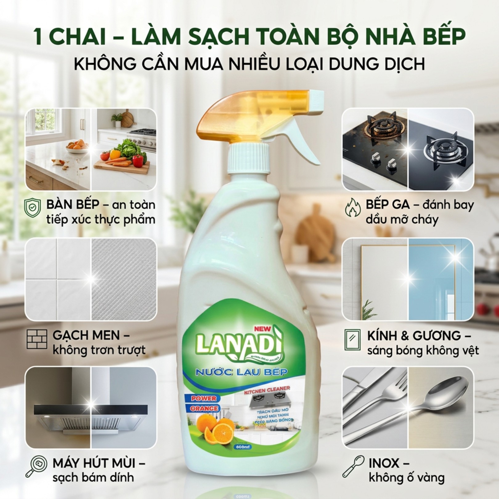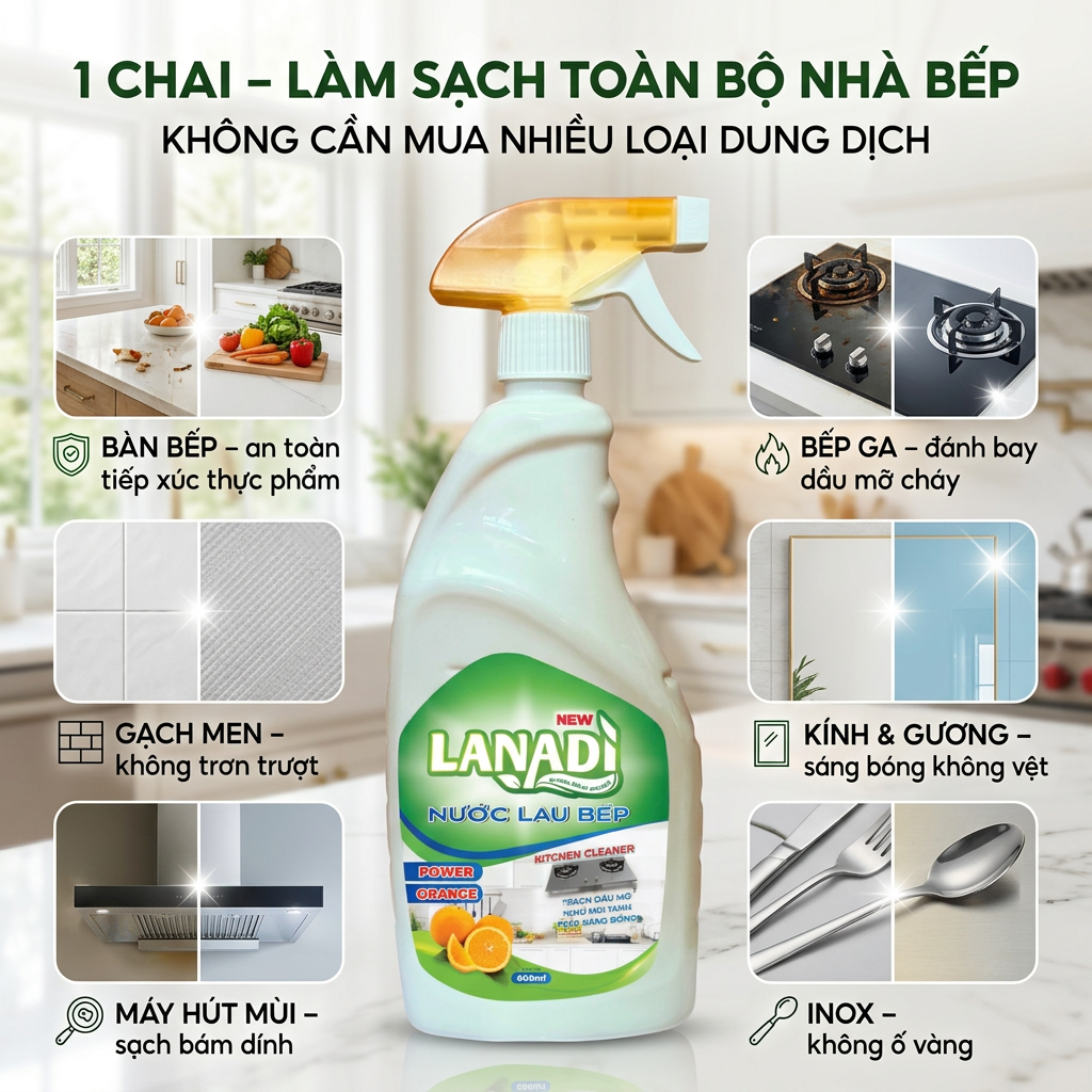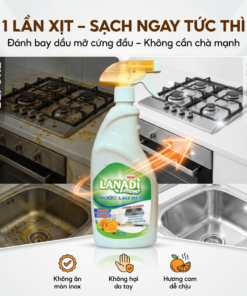 - Phun trực tiếp nước lau bếp LANADI lên bề mặt cần làm sạch.